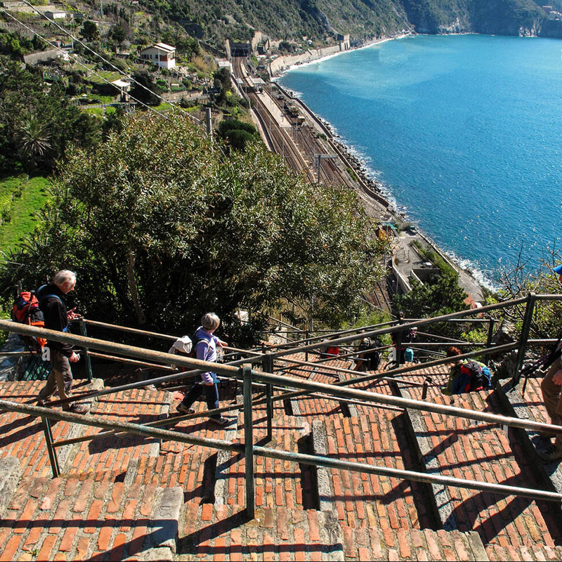 Corniglia is on a promontory that stands 100 meters high on sea level. Train station is at sea level and is 1 km far from the entrance of pedestrian area. The whole village of Corniglia is a pedestrian area.